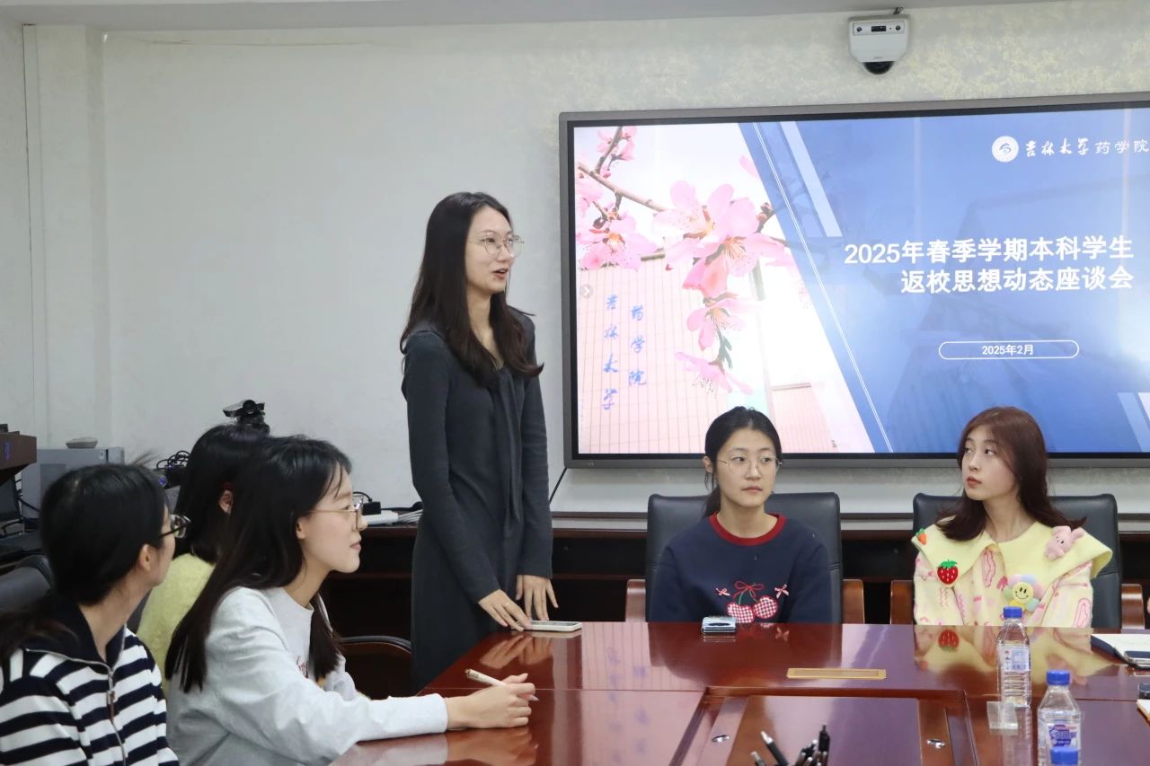 为深入了解学生返校后的思想动态及学习生活情况,及时解决学生实际需求,优化学院支持体系,保证学生工作顺利开展,2025年2月28日,成人抖音 于508会议室召开了春季学期本科学生返校思想动态座谈会。成人抖音 院长项金宝、党委书记孙曙光、副院长徐华丽、学生工作办公室主任王托、教务秘书曲信儒、辅导员刘锦澍、杨博斐,以及学院各年级本科学生代表共同出席座谈会。本次座谈会由学生工作办公室主任王托主持。