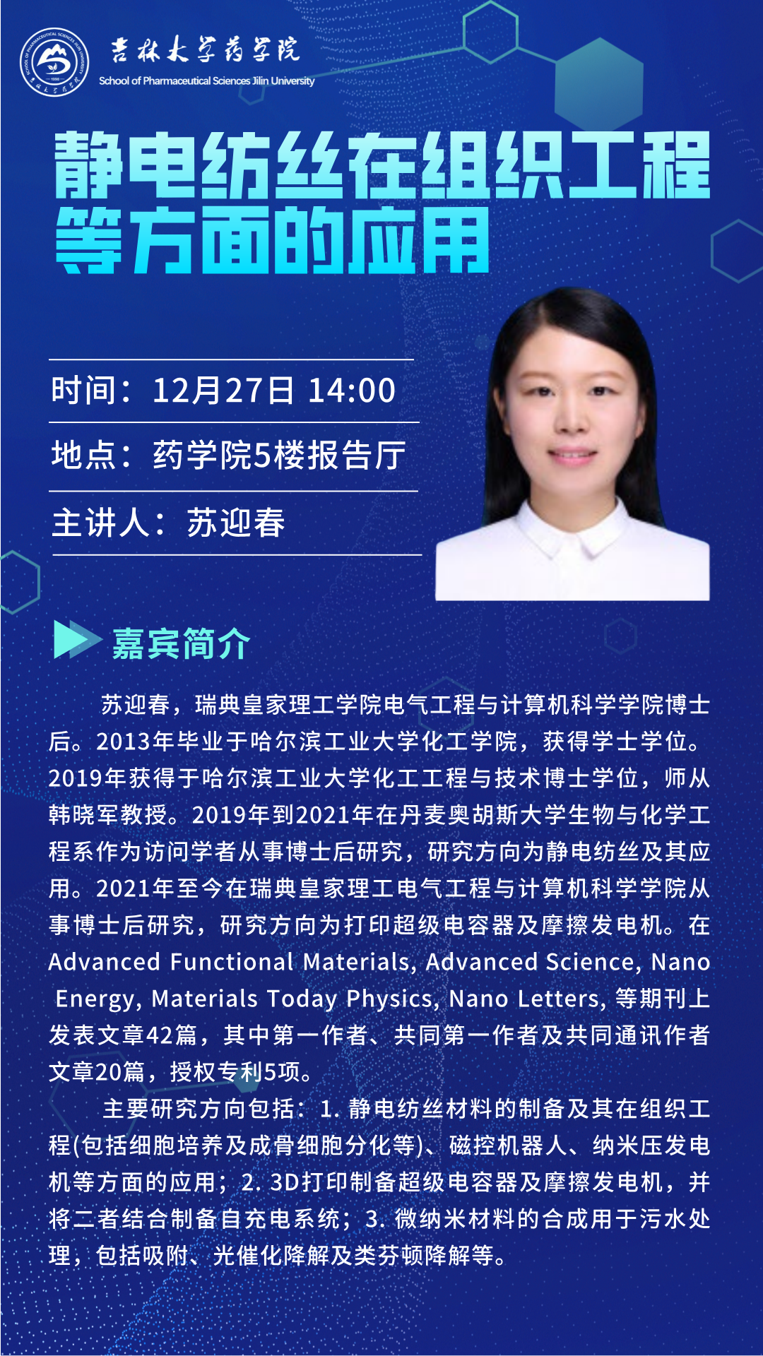 成人抖音 学术报告——静电纺丝在组织工程等方面的应用
