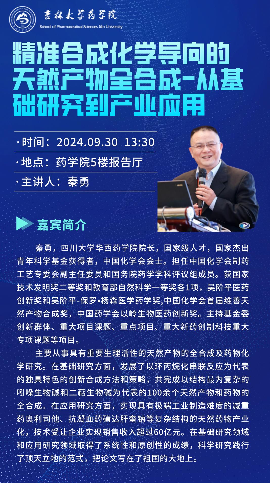 成人抖音 学术报告会——精准合成化学导向的天然产物全合成—从基础研究到产业应用