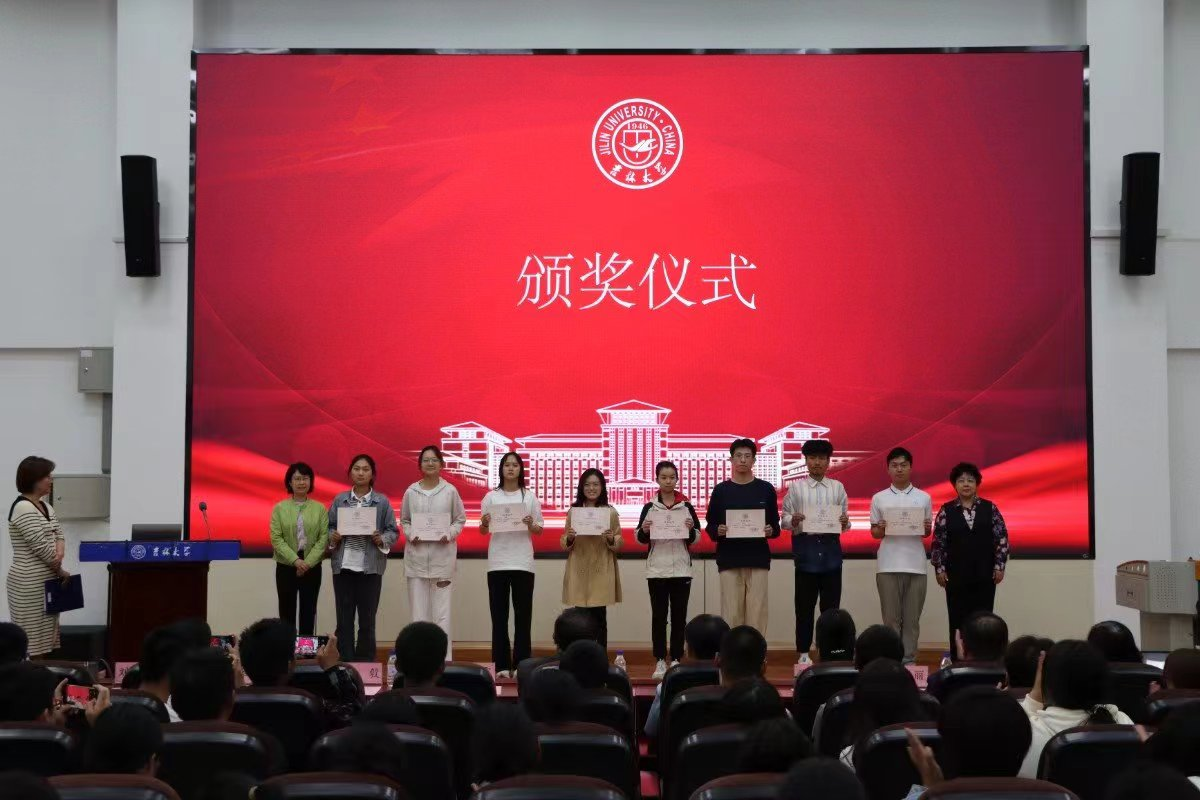 党委书记曲渊立、副院长管清香、副院长王毅、副院长曹霞为获得2023年军训“先进个人”的16名学生颁发荣誉证书;学院院长马杰为在2023级新生入学外语分级测试中获得免修资格的续凡卓同学颁发“学业进步之星”荣誉证书和奖品。