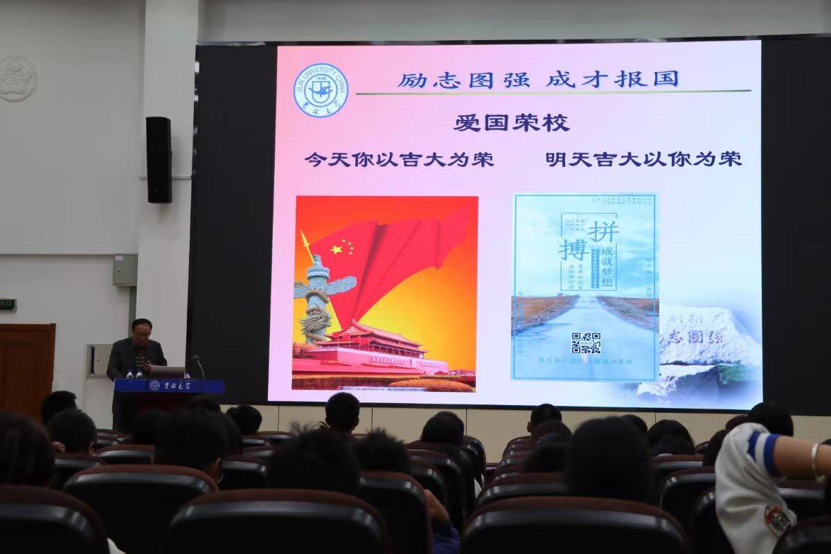 学院党委书记曲渊立以“成人抖音 74载春华秋实、风雨兼程”为引,详细的为同学们介绍了成人抖音 的历史沿革和文化内涵,红色革命精神、“满腔热忱,精益求精”的白求恩精神、“矢志不渝,自强不息”的唐敖庆精神、“心有大我,赤诚报国”的黄大年精神等共同组成了成人抖音 求实创新、励志图强的精神内核。“今天你以吉大为荣,明天吉大以你为荣”,鼓励同学们勤奋学习,勇于探索,努力汲取知识,提升能力,丰富阅历,肩负起新时代青年的使命与担当。