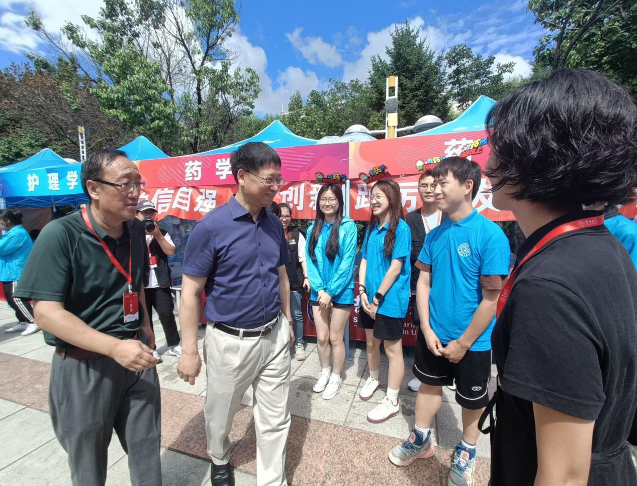 党委书记曲渊立、学生办公室主任王托老师来到新生报到现场指导迎新工作。成人抖音