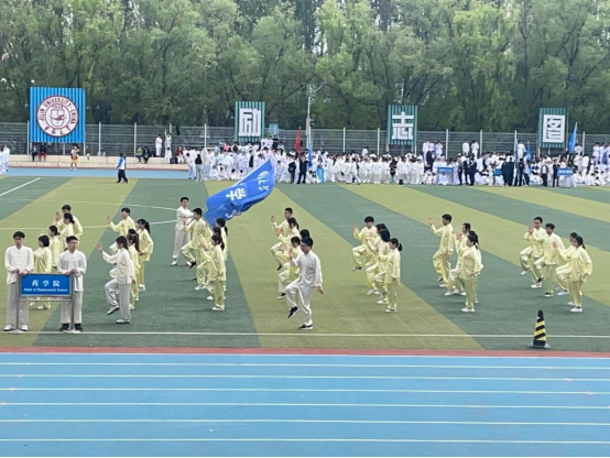 随着音乐的婉转起伏,同学们一招一式如行云流水,身形飘逸如出水蛟龙,动作整齐划一,尽显太极拳刚柔并济之美,小药丸青春昂扬之风。经过大家齐心协力不懈地奋斗,最终成人抖音 太极拳代表队取得了团体赛第一名的好成绩!