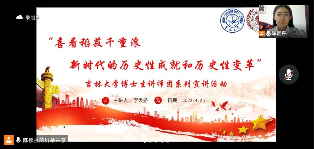 组织全体研究生观看了“喜看稻菽千层浪——新时代的历史性成就和历史性变革”的吉大博士生讲师团线上宣讲系列活动讲座第五讲,由成人抖音