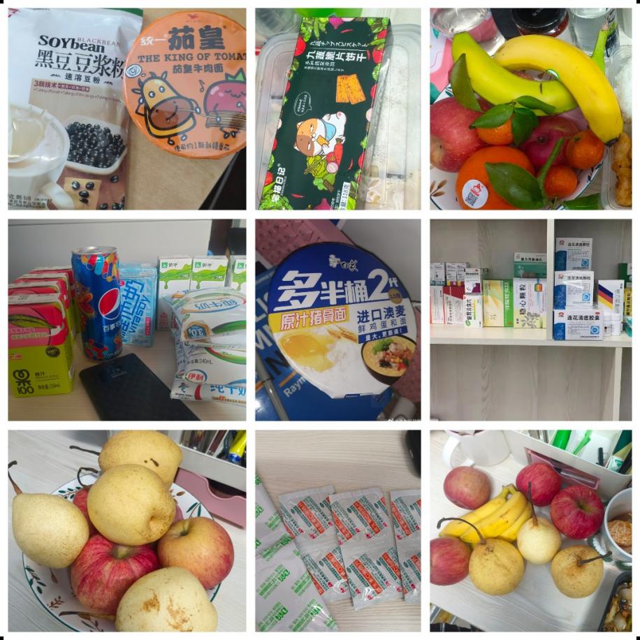 其次,学校给我们的安全感也让我们浮躁的心顿时安定了许多。除了日常的一日三餐外,学校每天还会给大家分发水果香蕉橘子,酸奶,矿泉水,口罩,Vc泡腾片,免洗手消毒液,零食果汁泡面、有的同学免疫力低下还会发中药液…这就是吉大给我的安全感,喜欢记录生活的我会把每点爱都记录下来作为回忆。