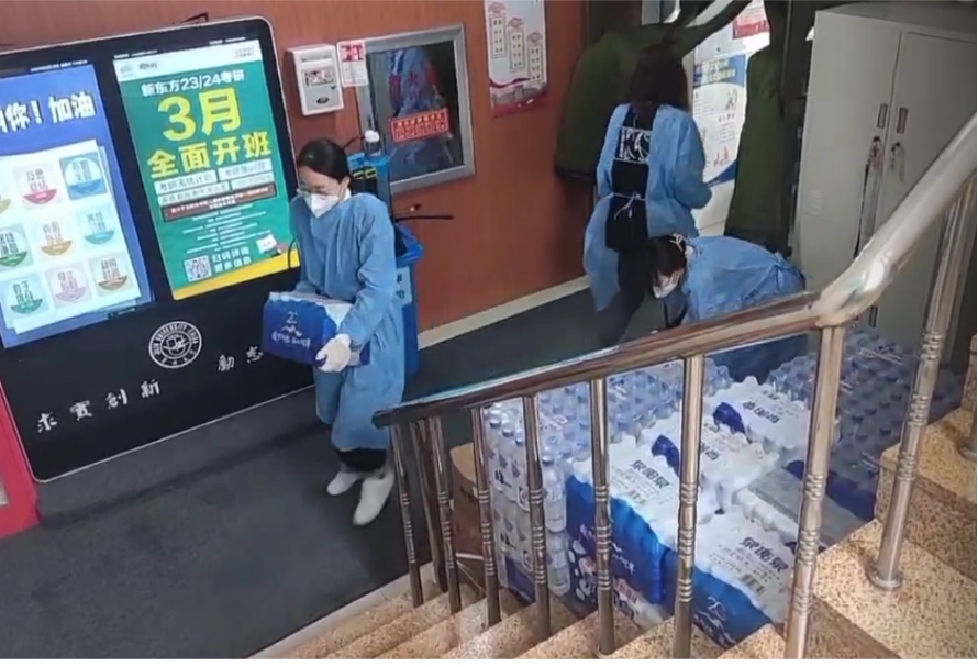 “疫情就是命令,防控就是责任”,面对疫情,药学的学生干部们、党员同志们积极响应号召,各年级各班级同学都积极报名参与志愿者工作,各公寓楼建立互助微信群,同学们互帮互助,大家都在用实际行动去构筑属于自己的青春防线。在外志愿者们是风雪中的战士,在宿舍楼里志愿者们是输送温暖的守卫者。早上7:00的早饭时间,中午11:30的午饭时间,晚上17:30的晚饭时间,志愿者们都准时有序地将食水送到六层楼里的各个宿舍进行分发,女孩子们蓝色、白色的身影出现在四公寓的各个角落。志愿者们除了保障同学们的食水之外,严格按照防疫要求,负责组织分发核酸自测试剂盒并有序组织统一做核酸,让同学们安全有序的进行核酸检测,此外还参与消杀工作,新民四公寓的女孩子们工作量不可谓不大,不可谓不辛苦,但勇敢善良的女孩子们从不言苦、迎难而上,用自己并不强壮的肩膀承担起一栋楼的安全。