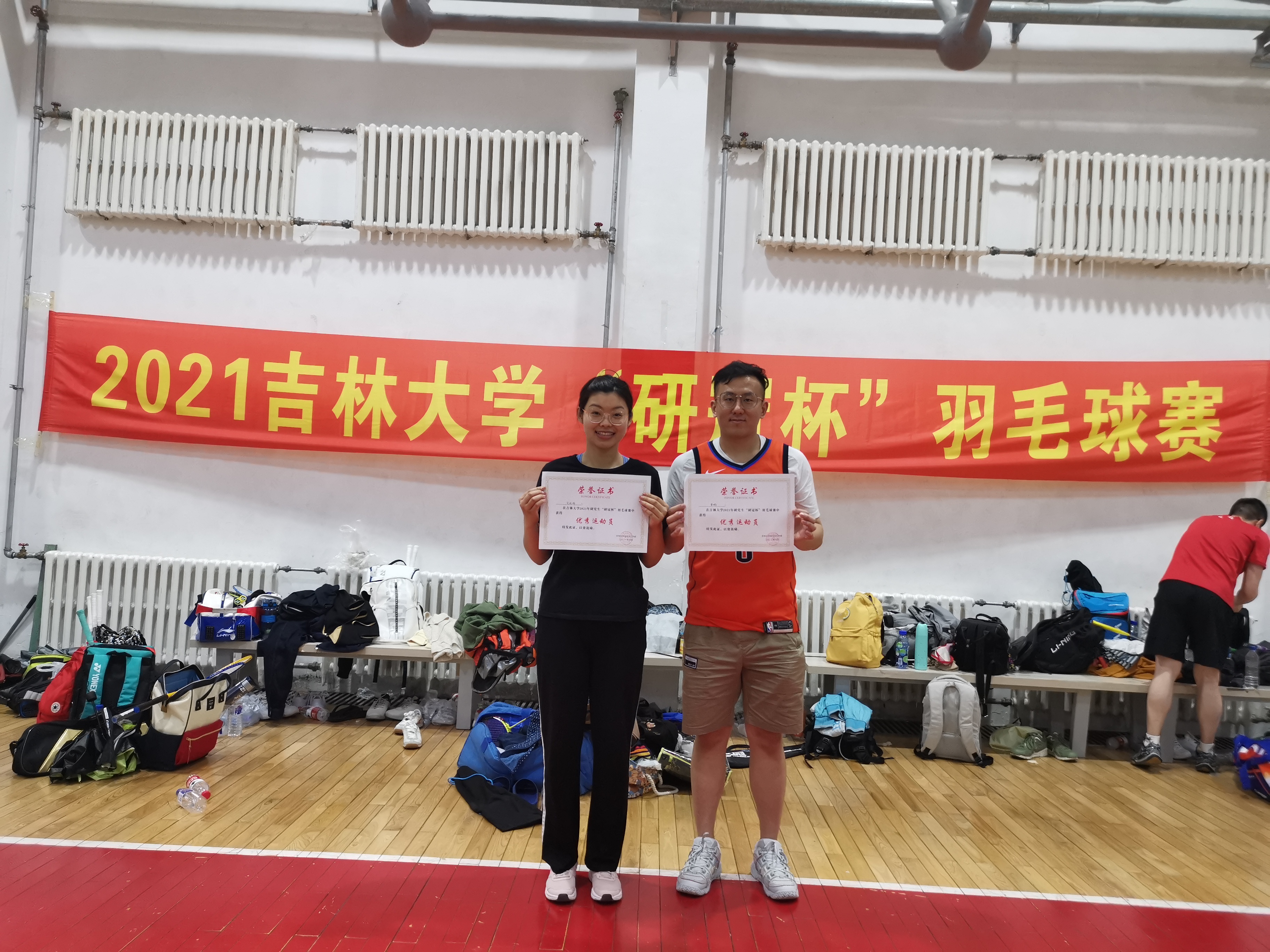 2021年研究生“研冠杯”羽毛球赛“优秀运动员”荣誉称号!为我院其他参赛选手鼓舞了士气,振奋了精神!男单选手方帅和刘俊彤同学,女单选手焦玉凤和陈小玲同学,混双选手史大臻、赖思含同学在赛场上尽情挥洒汗水,展示着令人炫目的技巧,把羽毛球的魅力完美地展现了出来!整个比赛中,大家欢声笑语,充满活力,展现了成人抖音