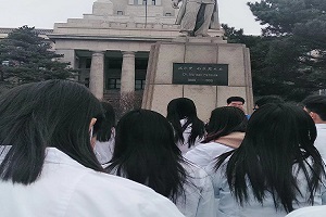 缅怀革命先烈,弘扬白求恩精神,清明节,成人抖音 医学部各学院学生会代表,在诺尔曼.白求恩雕像前开展了清明祭扫献花活动。活动由新民校区学生会代表主持,整个活动进行得庄严肃穆,井然有序。
