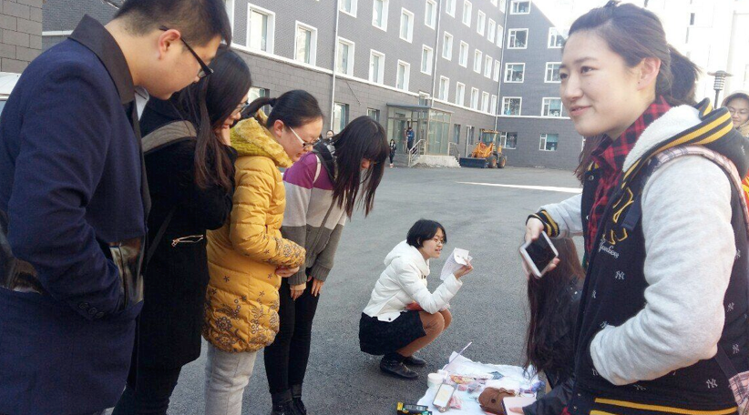 为了充分发挥兼职班主任在立德树人工作中的作用和优势,丰富班级活动及校园文化生活,培育白求恩式的优秀医学人才,2016年3月18日,我院2012级药学三班学生在新民校区学生一公寓楼下开展了 “萌芽为爱而生,义卖高歌前行”的爱心义卖活动。