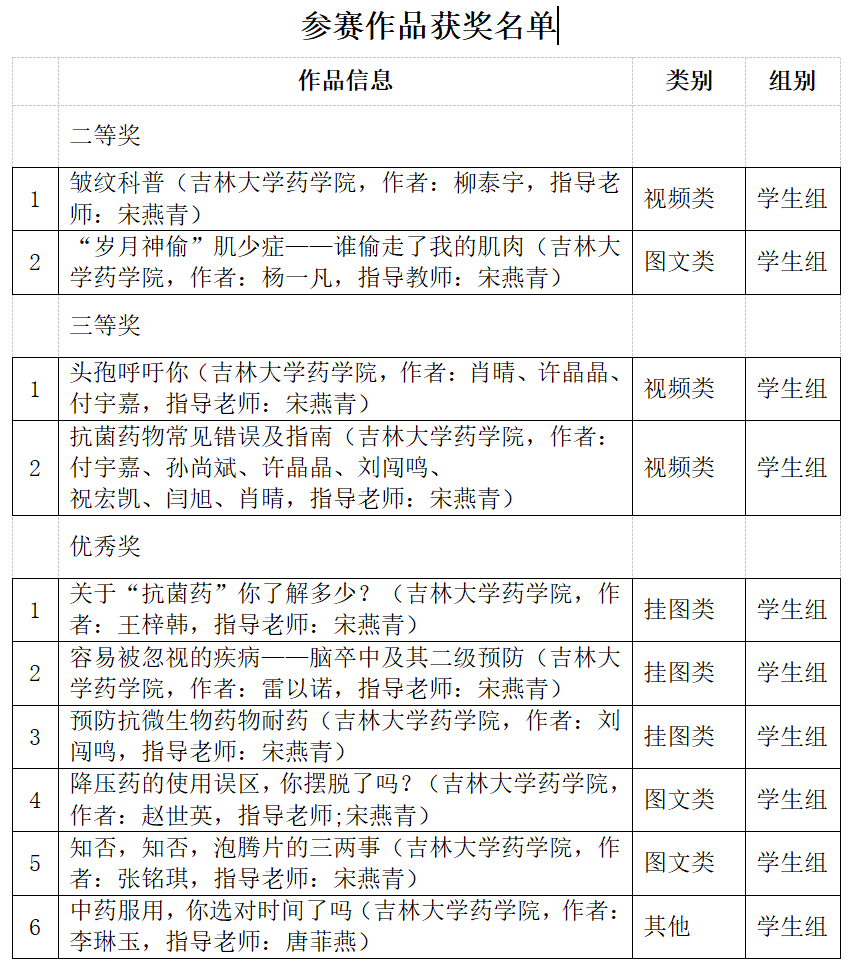 本次大赛的优异成绩,是我院师生共同努力的结果,也是我院科普教育成果的生动体现。未来,我院将继续深化科普教育,培养更多具备科普创作和传播能力的专业人才,为科普中国建设贡献药学智慧和力量。