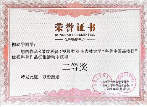 科学技术协会主办,旨在激发大学生的科普创作热情,培养科普人才。大赛共收到来自各学院的参赛作品518件,经过专家组的严格评审,最终评选出一等奖5名,二等奖15名,三等奖28名等奖项。
