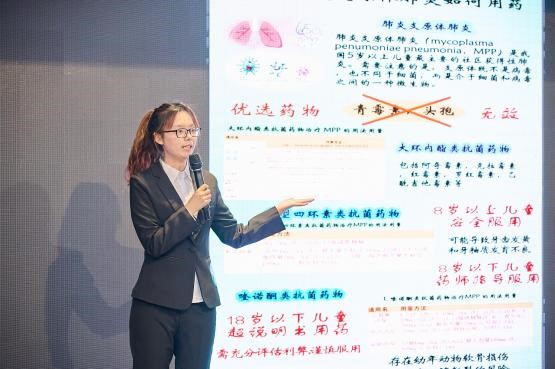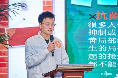 学子扎实的专业基础和良好精神面貌。来自2021级临床药学的付宇嘉、祝宏凯、孙尚斌、许晶晶、刘闯鸣、闫旭及肖晴7名同学将他们的作品《抗菌药物常见错误及指南》在现场以情景剧的形式呈现,表演生动形象,贴近生活,将药学科普融入其中,最终荣获团体组文艺作品二等奖。我院2021级本科生付宇嘉同学的展板作品《抗菌“药”知道,儿童肺炎支原体肺炎如何用药》荣获本次展板组二等奖。付宇嘉同学在汇报环节表现优异,给评委老师们留下了深刻的印象,展现出成人抖音