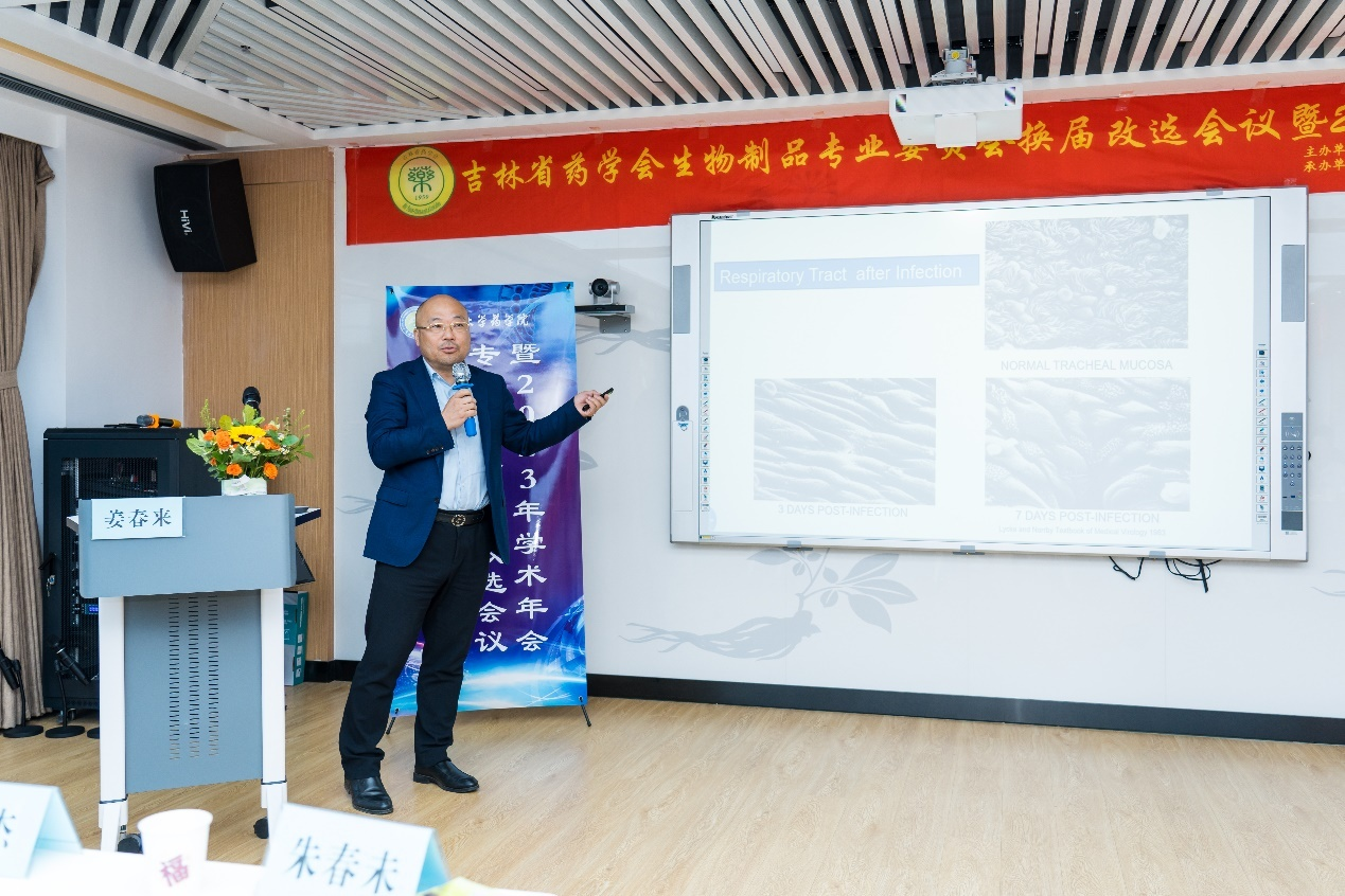 医学部副部长李滢宇、吉林省药学会理事长徐飞现场参会并讲话。省药学会生物制品专业委员会委员候选人60人参会。
