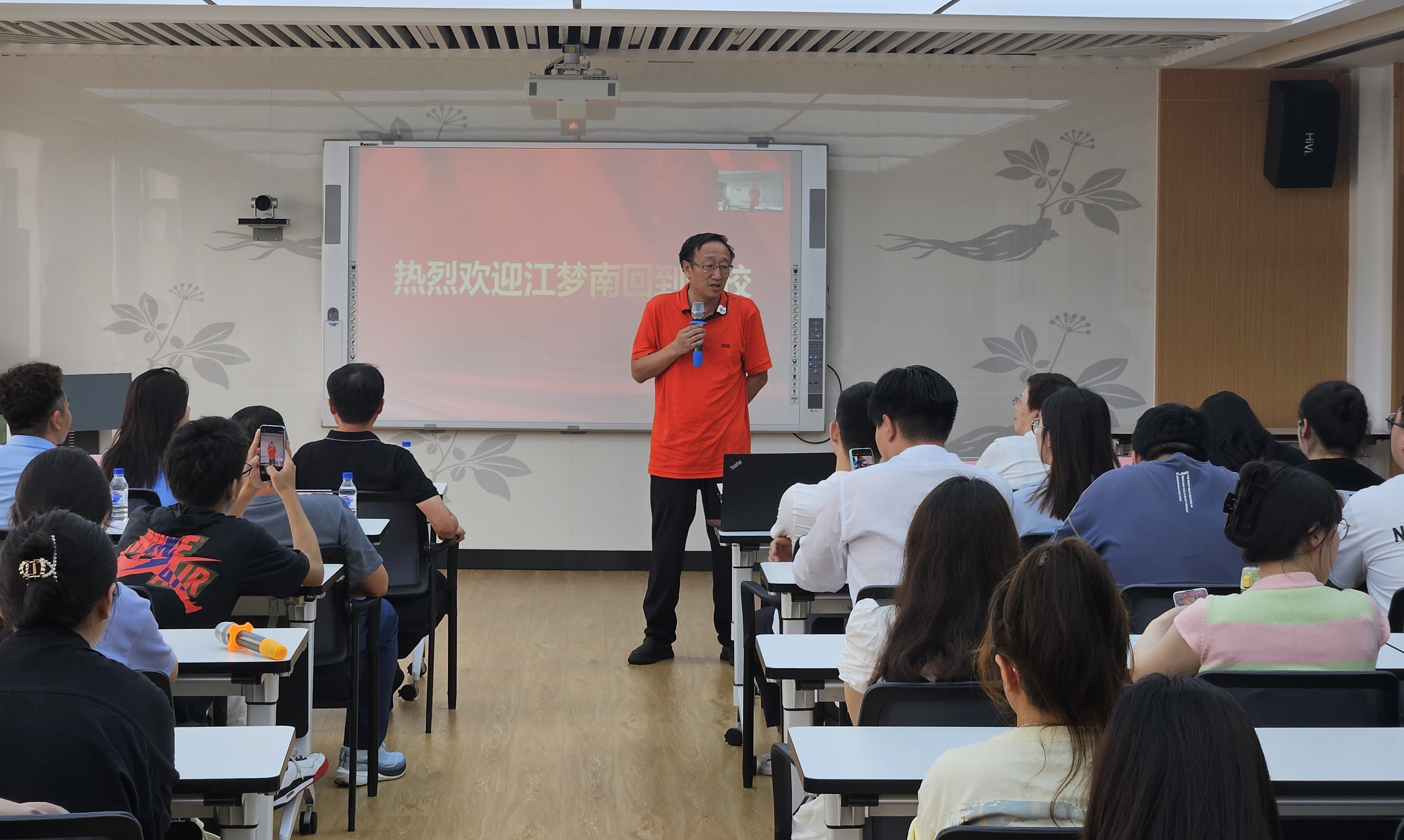 座谈会开始,刘丽慧副书记对优秀校友江梦南的学习成长经历进行了简要介绍。接下来梦南回忆了在成人抖音
