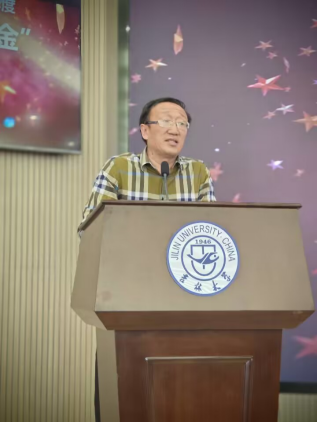 党委书记曲渊立致辞。曲书记在致辞中首先表达了对吉林省博大伟业制药有限公司大力资助的感谢,并向同学们详细介绍了博大伟业制药有限公司及“博大伟业”奖学金设立的意义。此外,曲书记还代表成人抖音